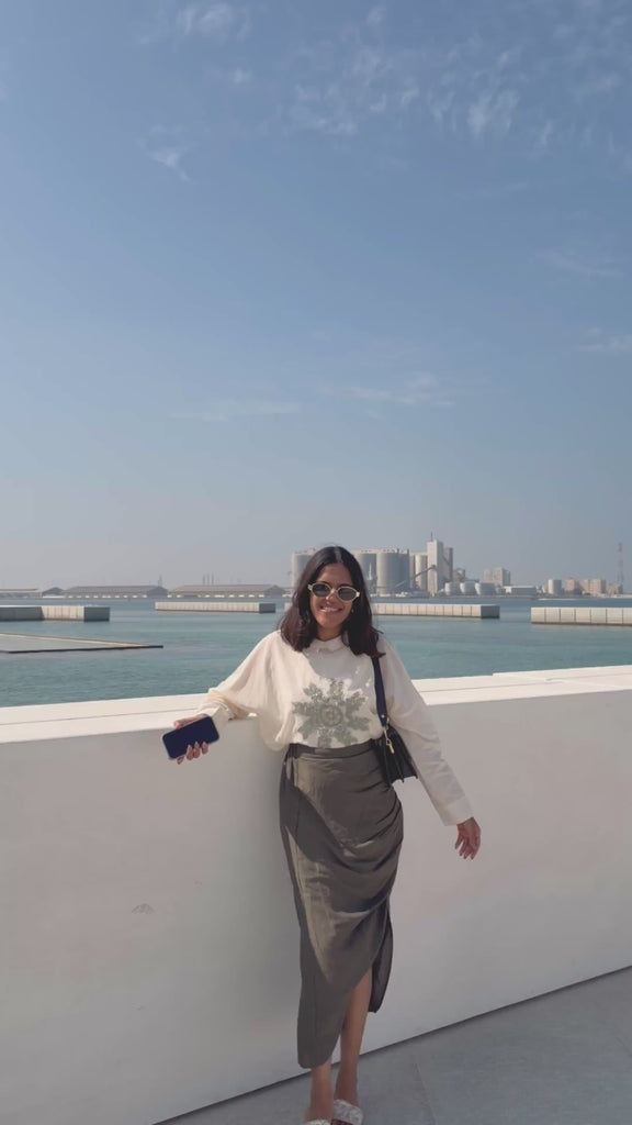 The Off-White Top is stylish and comfortable. The mandala embroidery gives a beautiful look.